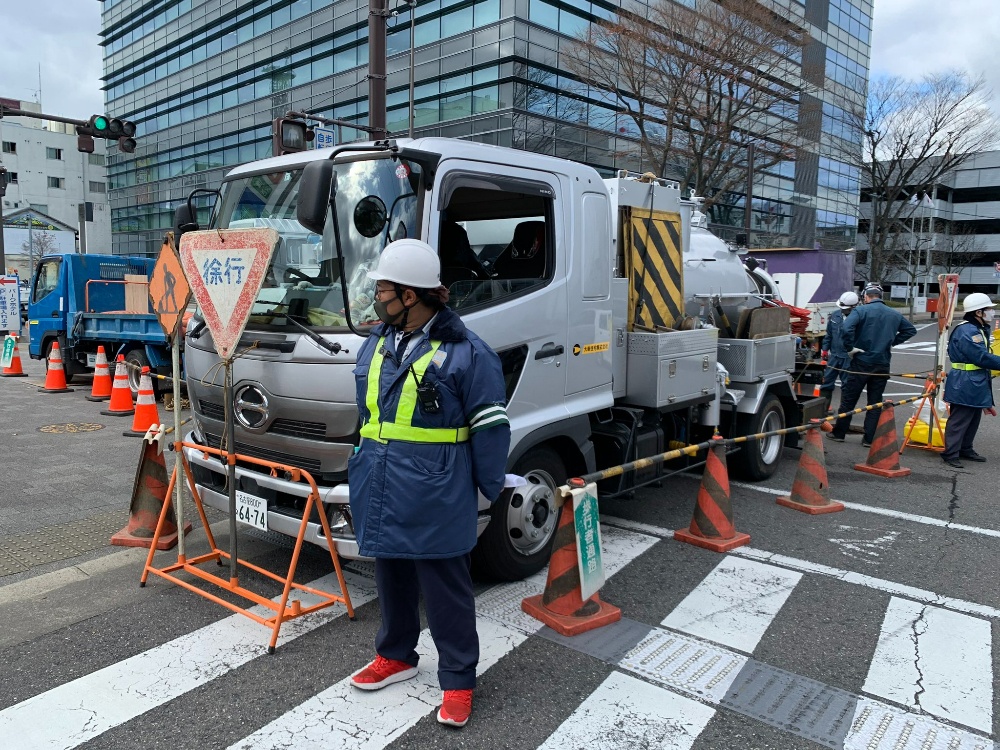 弊社は特に下水道管の清掃・調査系の現場が多く、道路のど真ん中に設置されているマンホール周りの危険な場所での業務に抵抗感が少ない警備員が多数在職しております。